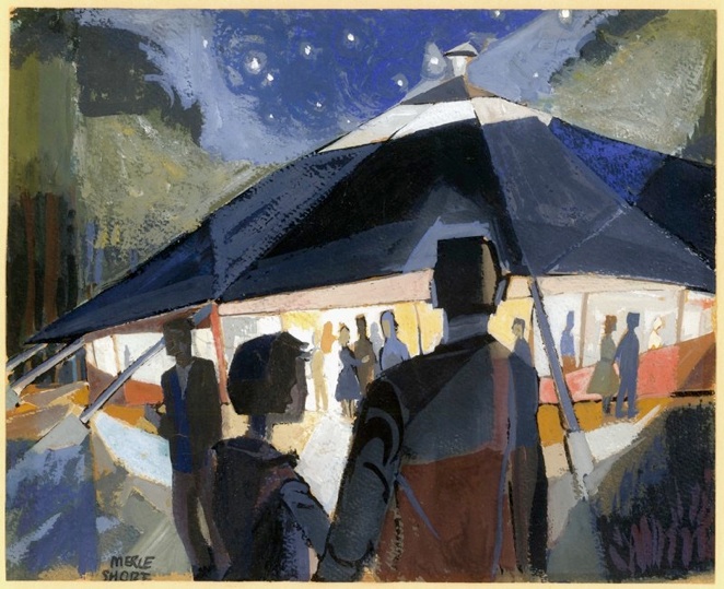 In August of 1954, the King Williams Players from St. Johns College staged the Shakespeare play Much Ado About Nothing at the tepee - in the round, of course. Noted artist and illustrator, Merle Shore, who was attending St John’s College at the time, created a painting (image above) depicting the evening. Merle offered the ‘tepee’ painting to Charlie as a keepsake and went on to become Art Director of the jazz label at Verve Records.